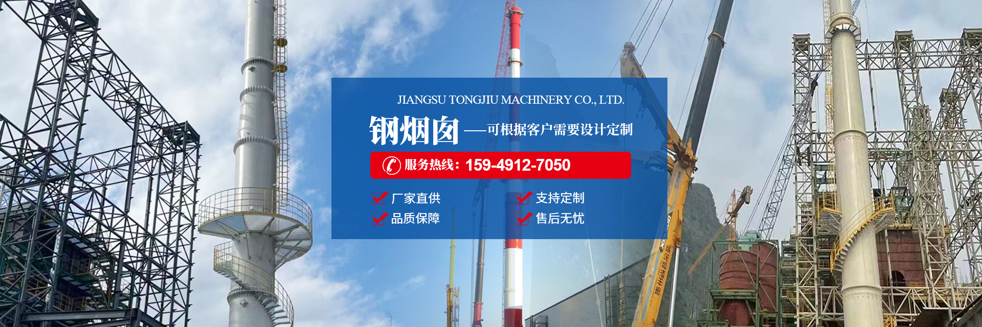 江苏通久机械有限公司专业从事不锈钢烟囱、碳钢烟囱、储罐、油罐、料仓、水泥仓、金属容器、化工设备、集装箱、预制建筑物的制作生产和销售安装。
